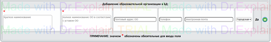 В нижней части таблицы (рис.101) размещен интерфейс для добавления в БД новой образовательной организации