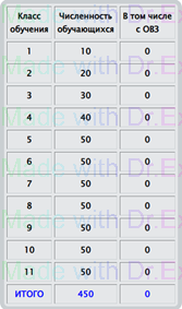 При обработке статистических данных очень часто необходимо обладать информацией о численности обучающихся вообще и по классам обучения в частности. При этом очень важным выступают количественные показатели обучающихся с ОВЗ. Сведения предоставляются пользователю на текущий момент времени (рис.103).
