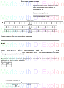 Отображает в главном окне бланк заявления, заполнив и, распечатав который, Вы можете подать его в конфликтную комиссию (п.п.6.7.1., 6.7.6.).