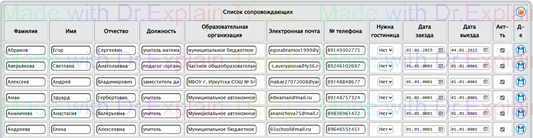 Рис.142. Фрагмент таблицы редактирования сведений о сопровождающих от муниципального образования