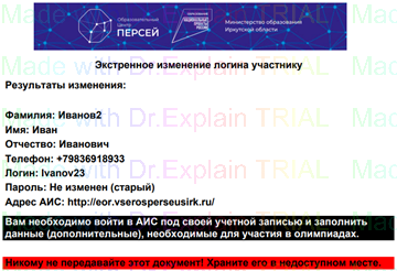 При успешном изменении логина участнику, будет сформирован и отображен в браузере документ в форматеPDF.