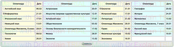 ·В таблице указаны даты регионального этапа олимпиад. Даты школьных и муниципальных этапов узнавайте у школьного (муниципального) координатора.
