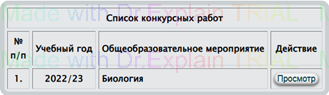 Для просмотра мнений экспертов необходимо нажать на кнопку напротив выбранной работы. Заключения экспертов будут представлены в таблице